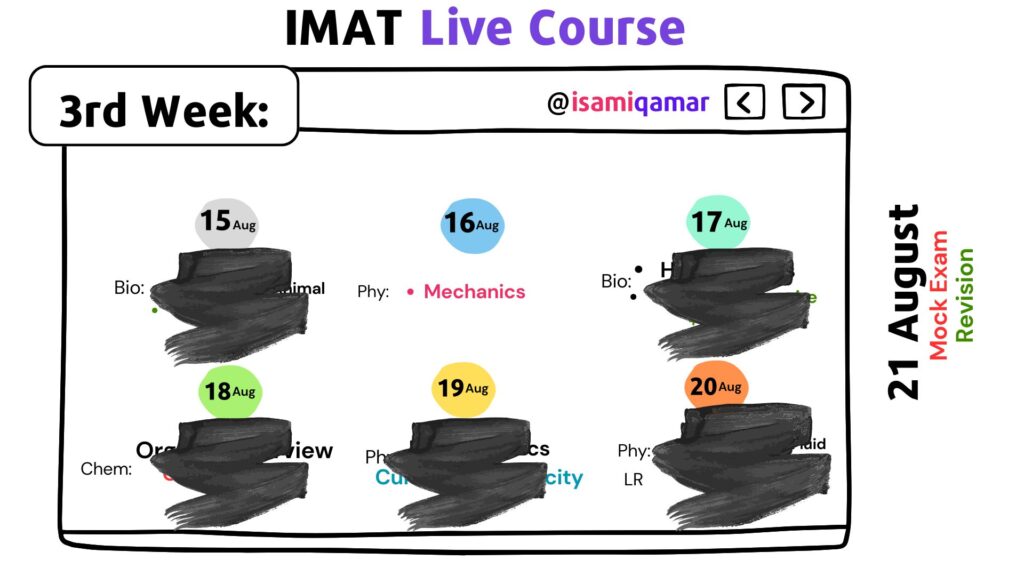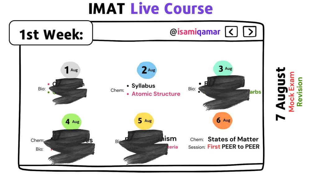 First of all it’s not a (so called) course, it’s just a booster, I would like to call it a SYSTEM. So, you are going to cover the whole IMAT syllabus in 1 month. Live lectures with IMAT PAST PAPERS, Practice Questions, Power Hours on biology, chemistry, physics and logical reasoning.